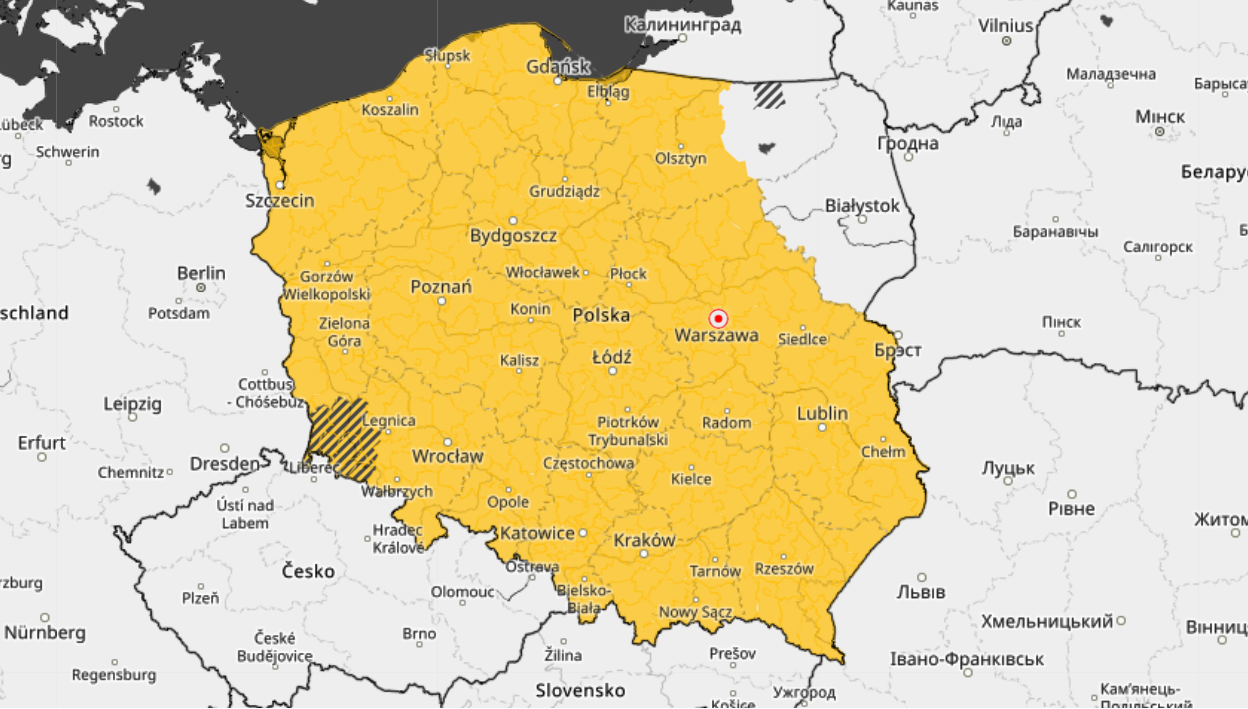 Uwaga: W związku z możliwością punktowych, intensywnych opadów, stopień ostrzeżenia może zostać podwyższony.