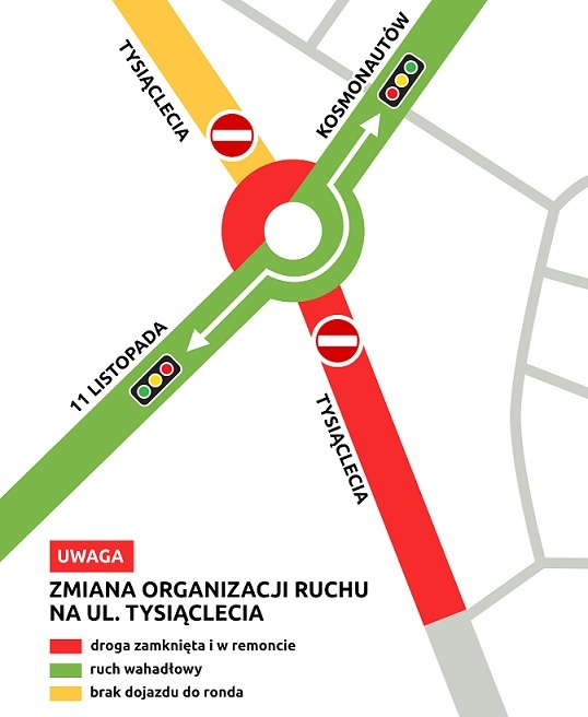 – Przejazd przez rondo możliwy będzie wahadłowo i tylko na wprost w relacji ulica 11 Listopada – ulica Kosmonautów – zapowiada Krzysztof Serafiński, zastępca naczelnik Wydziału Inwestycji Drogowych w Urzędzie Miejskim w Dąbrowie Górniczej.
