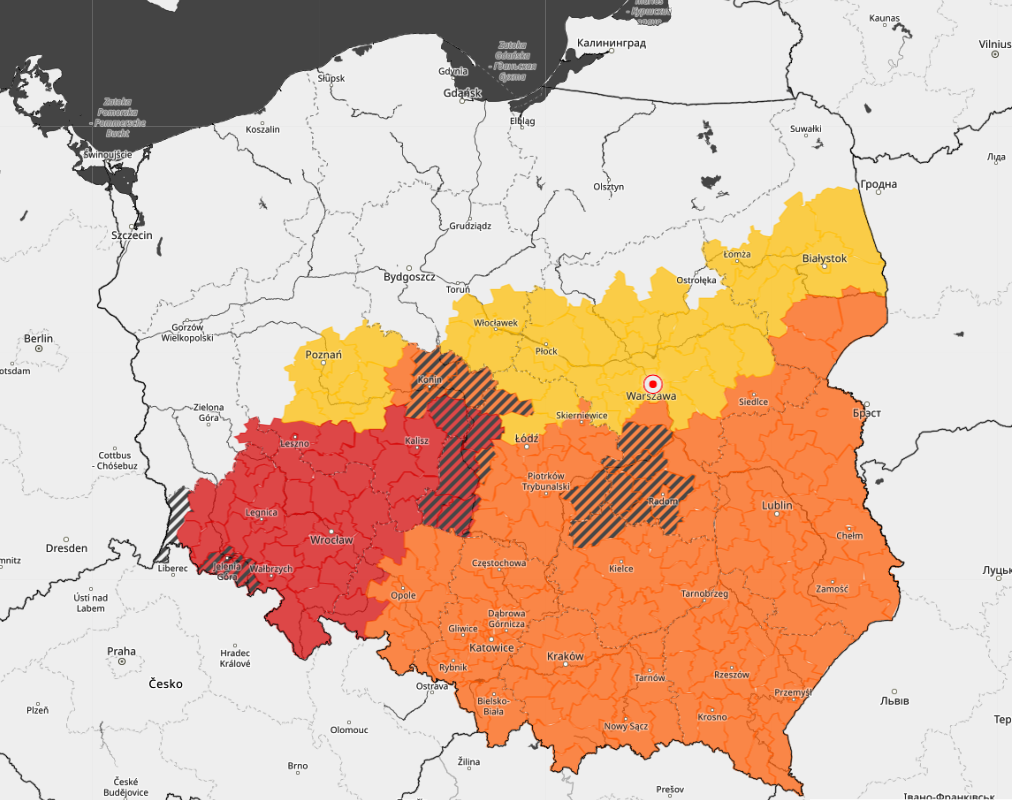 Alerty trzeciego, najwyższego stopnia przed burzami zostały wydane w województwach: