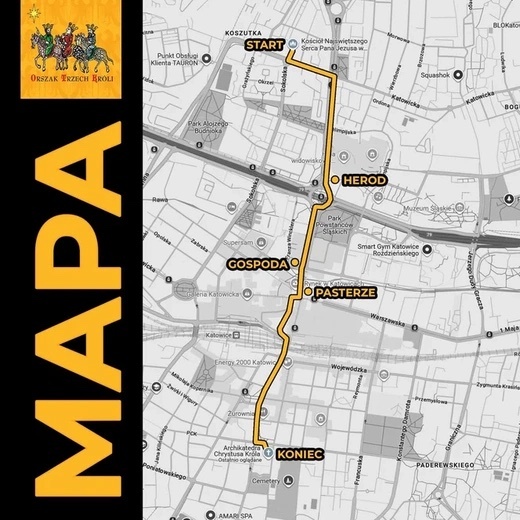 W tym roku formowanie procesji rozpocznie się ok. godz. 12.00 przy ul. Misjonarzy Oblatów MN. Barwny korowód przejdzie Aleją Korfantego, a następnie ulicami: Pocztową, Św. Jana i Kochanowskiego. Zakończenie przemarszu przewidziano ok. godz. 14.00 w katedrze Chrystusa Króla, gdzie odbędzie się wspólne kolędowanie z Rodziną Cudzichów. Na trasie przewidziano trzy przystanki: na Placu Sławika i Antalla (pod Spodkiem), Placu Obrońców Katowic i Placu Kwiatowym.