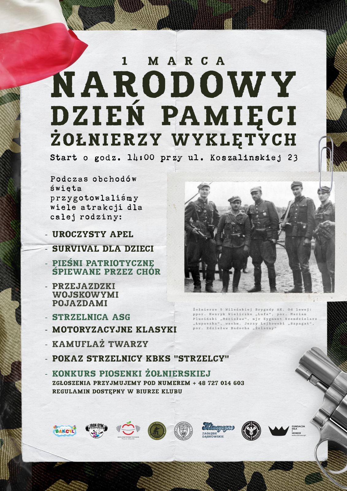 Z okazji Narodowego Dnia Pamięci Żołnierzy Wyklętych, 1 marca o godzinie 14:00 przy ul. Koszalińskiej 23, Spółdzielnia Mieszkaniowa "Hutnik" w Sosnowcu wraz z Fundacją dla Młodych oraz Fundacją "Siła i Honor" zaprasza wszystkich mieszkańców na wyjątkowe wydarzenie upamiętniające bohaterów polskiego podziemia niepodległościowego. W programie przewidziano liczne atrakcje, w tym m.in. przejażdżki pojazdami militarnymi, szkolenie survivalowe dla najmłodszych, konkurs piosenki żołnierskiej, nauka kamuflażu twarzy oraz wiele innych!