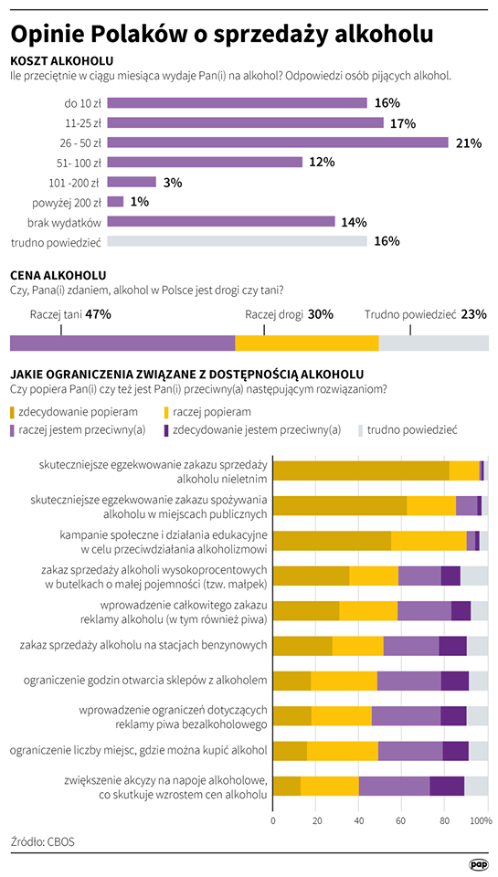 We wtorek nowelizacją zajmie się Senat. Rząd chce, aby nowa akcyza obowiązywała już od 1 stycznia 2020 roku. Polska Agencja Prasowa przeprowadziła badania wśród Polaków. Wynika z nich, że najwięcej przepytanych osób wydaje miesięcznie na alkohol maksymalnie 50 złotych, 1 procent przekracza 200 złotych, a aż 16 procent nie potrafi ustalić swoich wydatków.