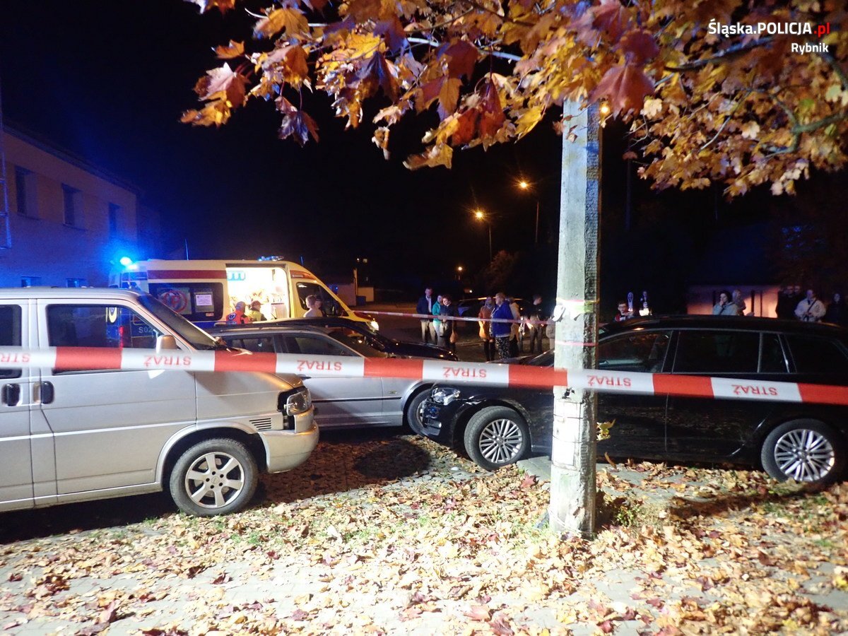 Jak ustalili policjanci z rybnickiej drogówki, 30-letni kierujący volkswagenem najprawdopodobniej nie dostosował prędkości do warunków drogowych, utracił panowanie nad pojazdem i uderzył w słupek oznakowania drogowego. Następnie przejeżdżając przez chodnik, zjechał na pobliski parking i uderzył w dwa prawidłowo zaparkowane pojazdy.