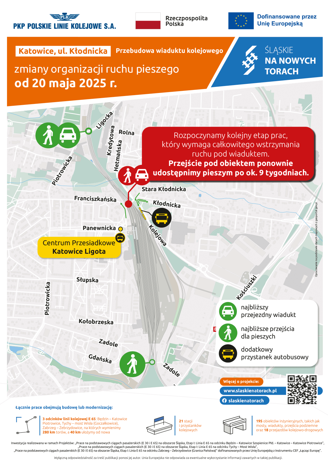 W Katowicach trwa kolejny etap przebudowy wiaduktu kolejowego przy ulicy Kłodnickiej, będącego częścią dużej inwestycji realizowanej przez PKP Polskie Linie Kolejowe S.A. na odcinku linii Katowice Szopienice Południowe – Katowice Piotrowice. Projekt współfinansowany jest ze środków unijnych w ramach instrumentu CEF „Łącząc Europę”.