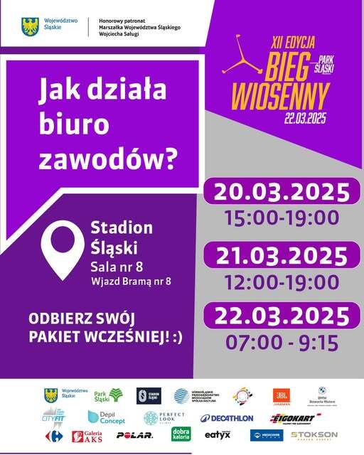Honorowy patronat nad Biegiem Wiosennym objął Marszałek Województwa Śląskiego. Współorganizatorem Biegu Wiosennego jest Stadion Śląski.