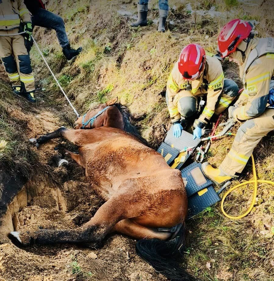 Zgłoszenie wpłynęło do dyżurnego Komendy Miejskiej Państwowej Straży Pożarnej w Tychach. Na miejscu weterynarze wskazali najbezpieczniejszy sposób na wydobycie zwierzęcia.