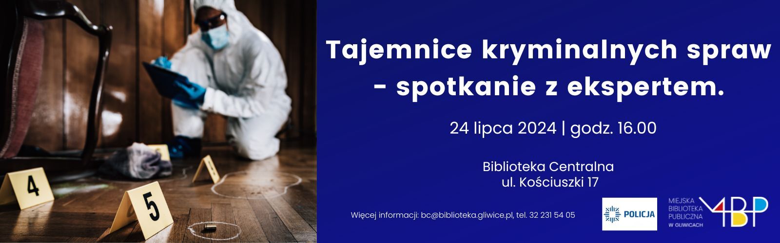 Z okazji Święta Policji w dniu 24 lipca br. o godzinie 16:00 w Miejskiej Bibliotece Publicznej w Gliwicach odbędzie się wyjątkowe spotkanie z doświadczonym policjantem z wydziału kryminalnego, który przybliży kulisy rozwiązywania skomplikowanych spraw kryminalnych oraz opowie jak wygląda poszukiwanie osób zaginionych.