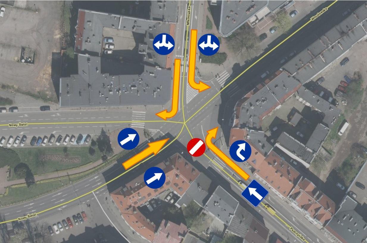 - Z ulicy Mikołowskiej nie przejedziemy na wprost w ul. Pszczyńską. Zachowany został prawoskręt z ulicy Mikołowskiej w ulicę Nowy Świat. Pozostała także możliwość skrętu w lewo do ulicy Wrocławskiej. Objazd do ulicy Pszczyńskiej wytyczono ulicami: Wrocławską, Łużycką, Kujawską i Panewnicką do ulicy Pszczyńskiej.