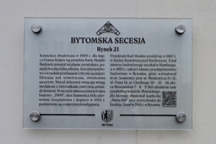 Ze względu na bogactwo architektury secesyjnej, Bytom przez lata nazywany był „małym Wiedniem". Popularność secesji przypadła tu na okres szybkiego rozwoju miasta na początku XX wieku. To w Bytomiu wówczas budowane były najpiękniejsze kamienice w stylu Jugendstil, projektu nie tylko miejscowych architektów, ale też tworzone na deskach kreślarskich w Berlinie, Wrocławiu czy Katowicach. Teraz historia 35 najciekawszych architektonicznie secesyjnych budynków Śródmieścia została opisana w ramach bytomskiego Szlaku Architektury Secesyjnej. Historię tę można poznać dzięki nowym wydawnictwom Urzędu Miejskiego w Bytomiu – bezpłatnej mapie, serii podcastów oraz dziesięciu tablicom informacyjnym, które pojawiły się w przestrzeni miasta.