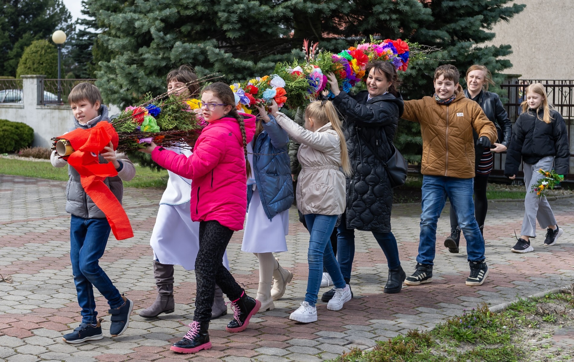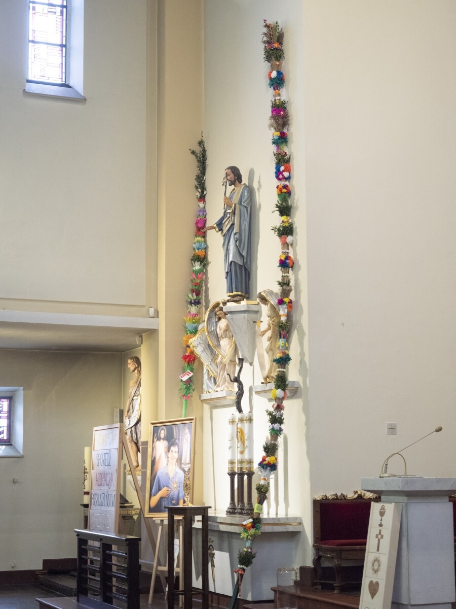 Zwyczaj święcenia palm pojawił się w Kościele w XI wieku. Palmy w Polsce zastępują często gałązki wierzbowe z baziami, jednak do wykonywania dużych palm wielkanocnych, jakie mogliśmy dzisiaj 24 marca zobaczyć w parafii pw. Chrystusa Króla w Bytomiu – Stolarzowicach zazwyczaj używa się zielonego bukszanu, gałązek, baź, ale również suszonych traw i ziół oraz kwiatów w różnych kolorach. Te zaprezentowane w Stolarzowicach palmy przygotowały dzieci i uczniowie z Przedszkola Miejskiego nr 53 i 54 oraz Szkół Podstawowych nr 43 i 47.