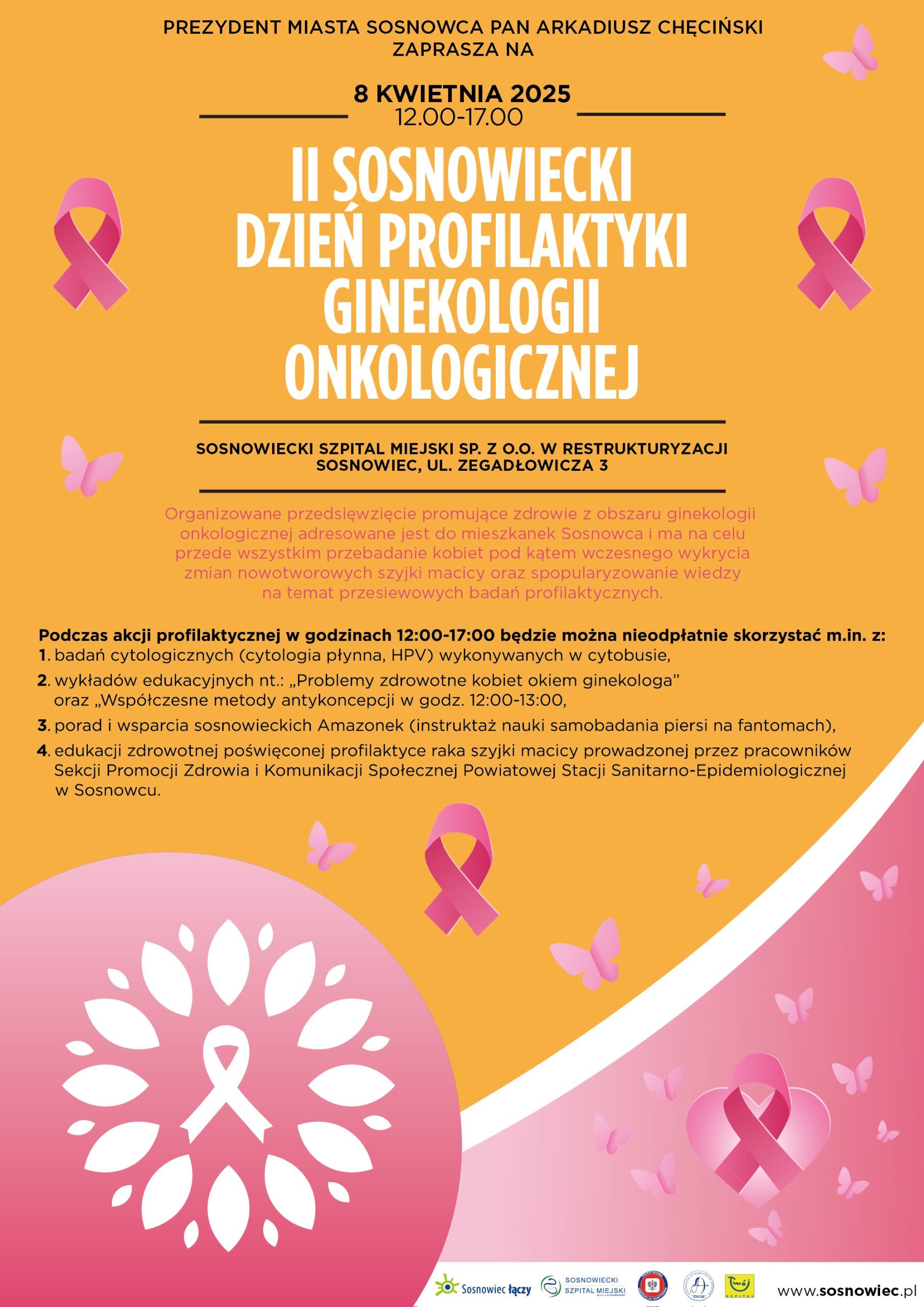Z powodu nowotworów ginekologicznych co roku umiera około sześciu tysięcy Polek. Najbardziej śmiertelny jest rak jajnika – rocznie umiera na niego 2,5 tysiąca kobiet w Polsce. 8 kwietnia w godzinach od 12.00 do 17.00 na terenie Sosnowieckiego Szpitala Miejskiego przy ulicy Zegadłowicza 3 zorganizowana zostanie akcja promująca zdrowie z obszaru ginekologii onkologicznej.