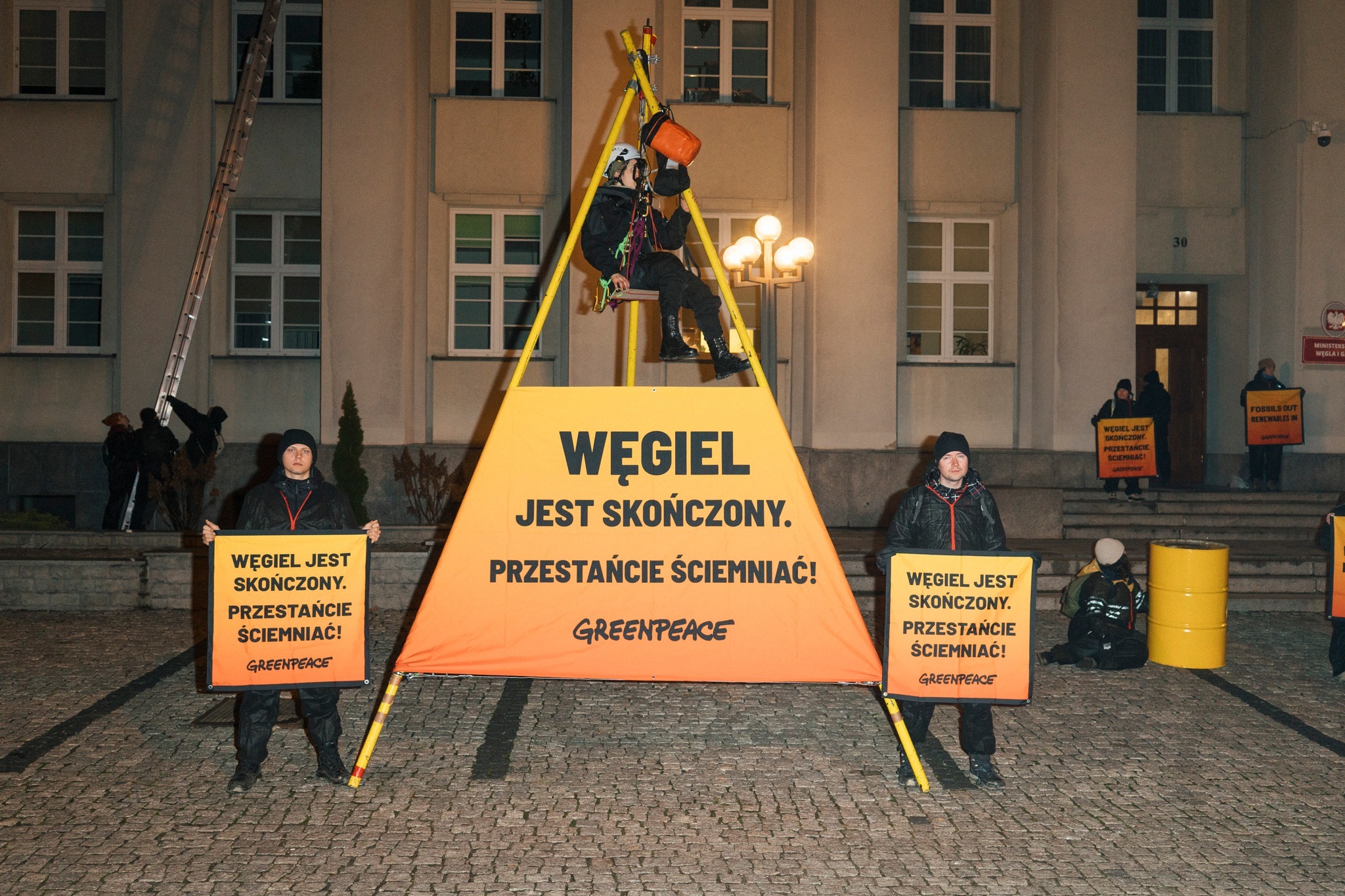 Dziś rano aktywiści i aktywistki Greenpeace zorganizowali protest pod siedzibą Ministerstwa Przemysłu w Katowicach. Domagają się od rządu Donalda Tuska opracowania realnego i sprawiedliwego planu odejścia Polski od węgla, jednocześnie oskarżając władze o manipulowanie opinią publiczną.