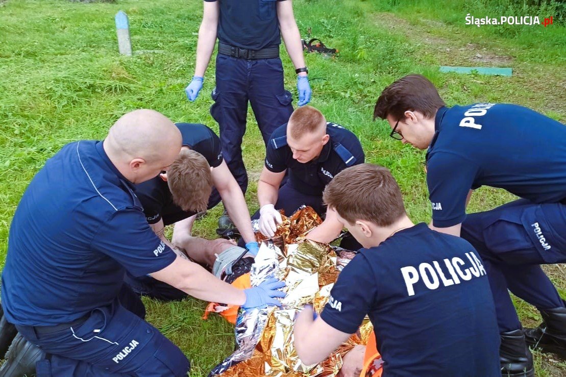 Wiele szczęścia miał pracownik koszący trawę przy torowisku kolejowym w pobliżu katowickiego oddziału prewencji. Gdy w trakcie pracy został przypadkowo poważnie zraniony kosą spalinową, pomoc przyszła bardzo szybko. Wszystko bowiem rozgrywało się pod oknami sali wykładowej, gdzie odbywały się zajęcia z pierwszej pomocy dla mundurowych kursantów, prowadzone przez doświadczonych policyjnych ratowników medycznych.